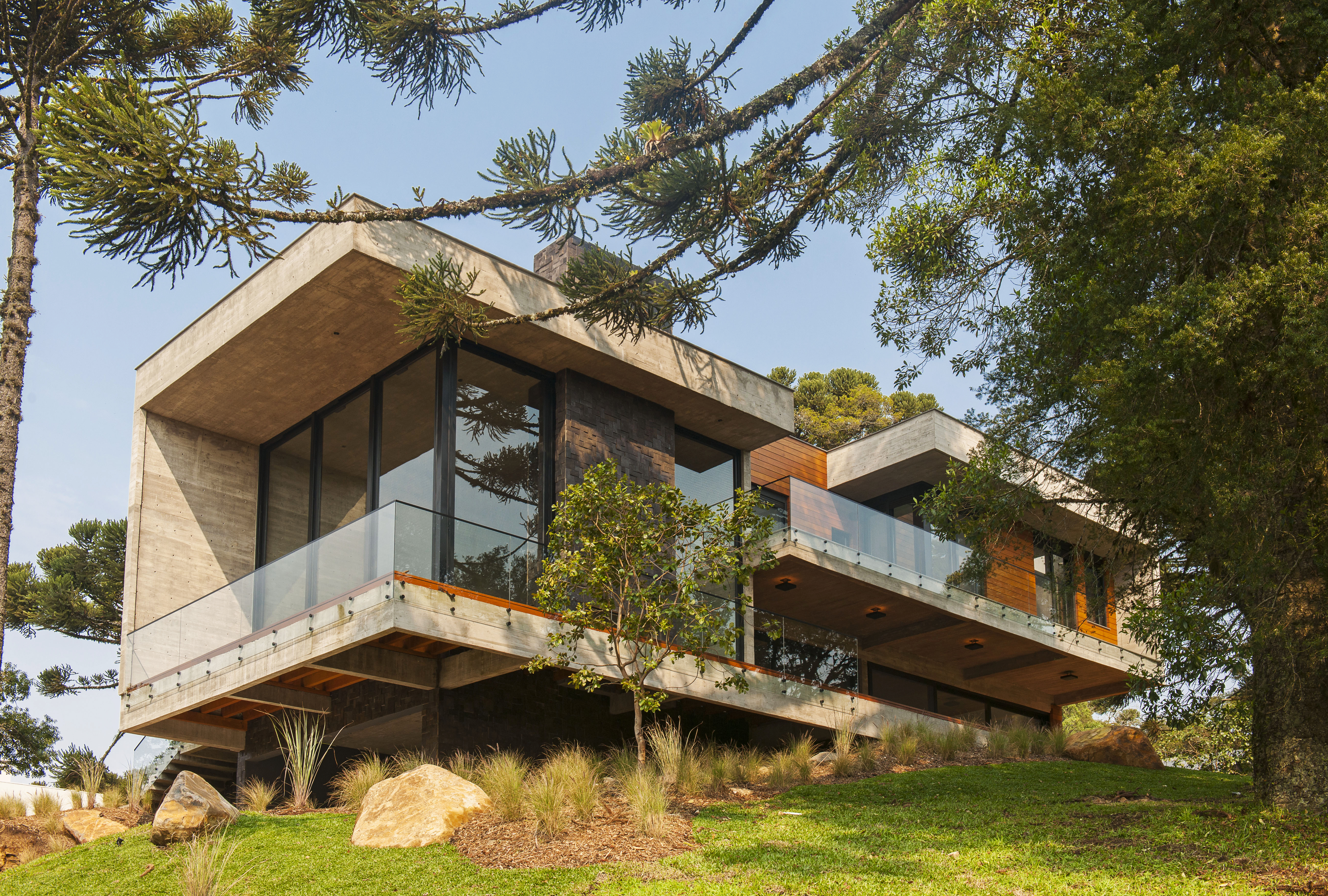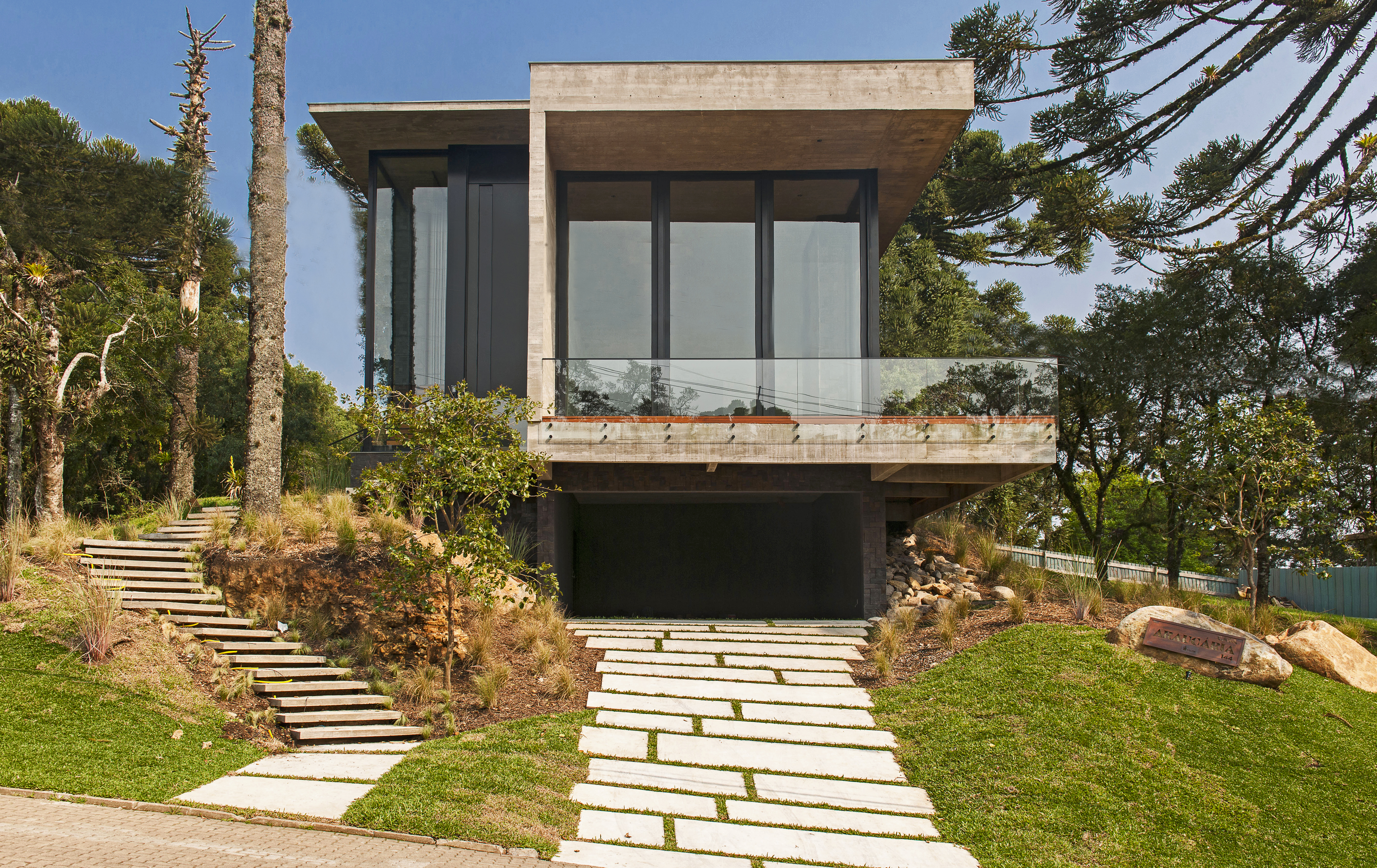 A Casa Araucária, é um luxuoso projeto em estilo contemporâneo, que apresenta linhas e formas simples, passando a impressão de um projeto ousado e charmoso, no condomínio Altos Pinheiros, no centro de Canela.