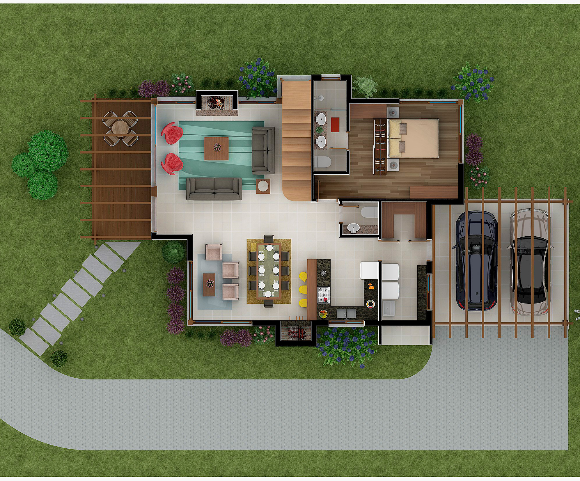 Com pouco mais de 235 m² de área construída, em um terreno de 800 m², a casa é composta por: 3 grandes suítes, sala de estar, sala de jantar e cozinha americana em um único ambiente com 60 m², lavabo, garagem coberta para 2 carros, etc…